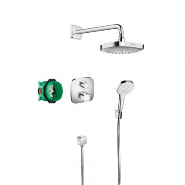 Be the first to review “Sistem de dus incastrat termostatat Hansgrohe Design Croma Select E Ecostat E cu 2 consumatori”